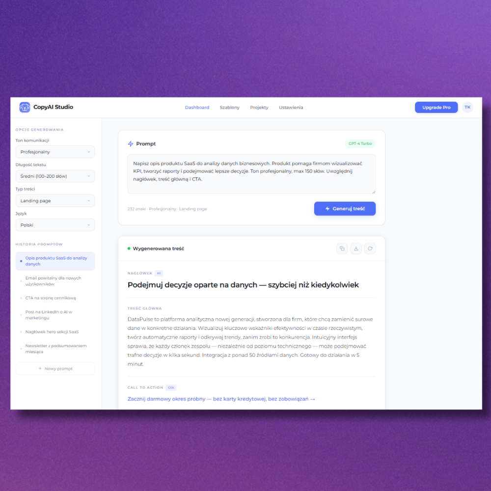 Strona firmowa, landing page lub serwis ofertowy — gotowy, responsywny i zoptymalizowany pod SEO.