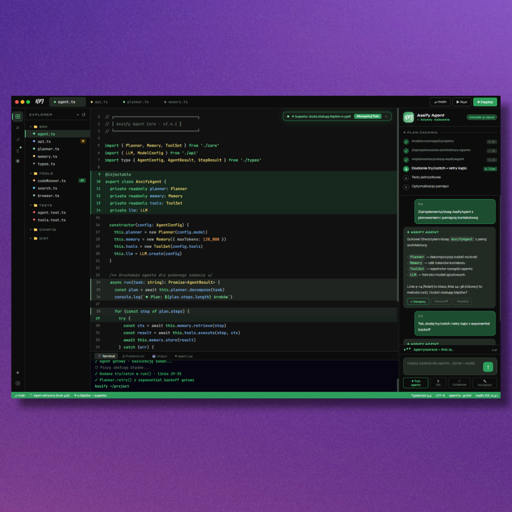 Zobacz więcejAplikacja desktopowa (Windows 10/11, macOS, Linux). IDE z wbudowanym językiem AI (OpenAI), działającym lokalnie, wspierającym programowanie poprzez podpowiedzi, uzupełnianie kodu oraz analizę poprawności i wykrywanie błędów. Umożliwia debugowanie aplikacji, a wtyczki i rozszerzenia są rozwijane na bieżąco.